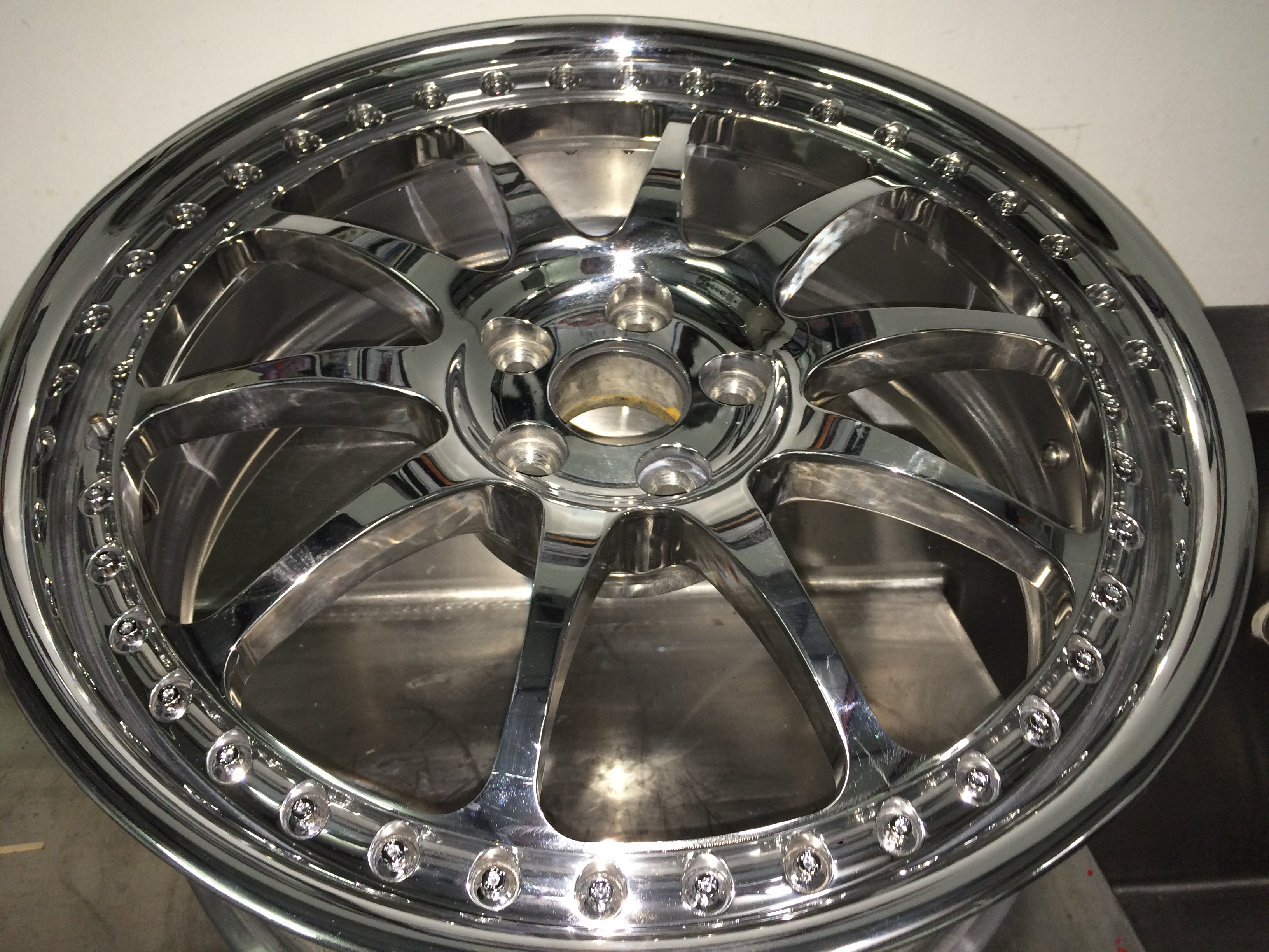 Ferrari HRE wheels before and after polishing.